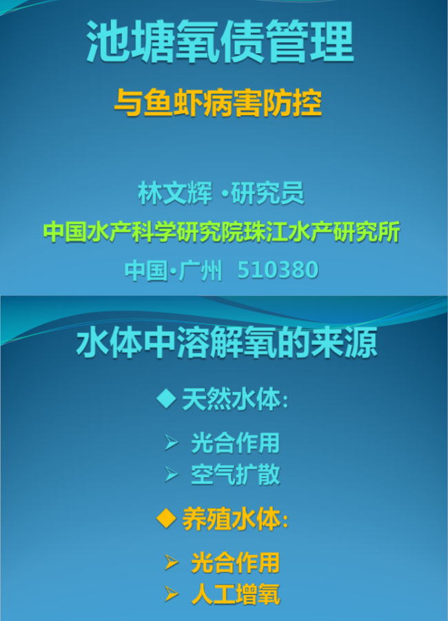 2015年12月22日,2016年北京水世纪战略合作伙伴发展大会在武汉开幕,中国水产科学研究院珠江水产研究所林文辉老师给大家分享了《池塘氧债管理与鱼虾病害防控》的精彩报告,下面是报告全文: